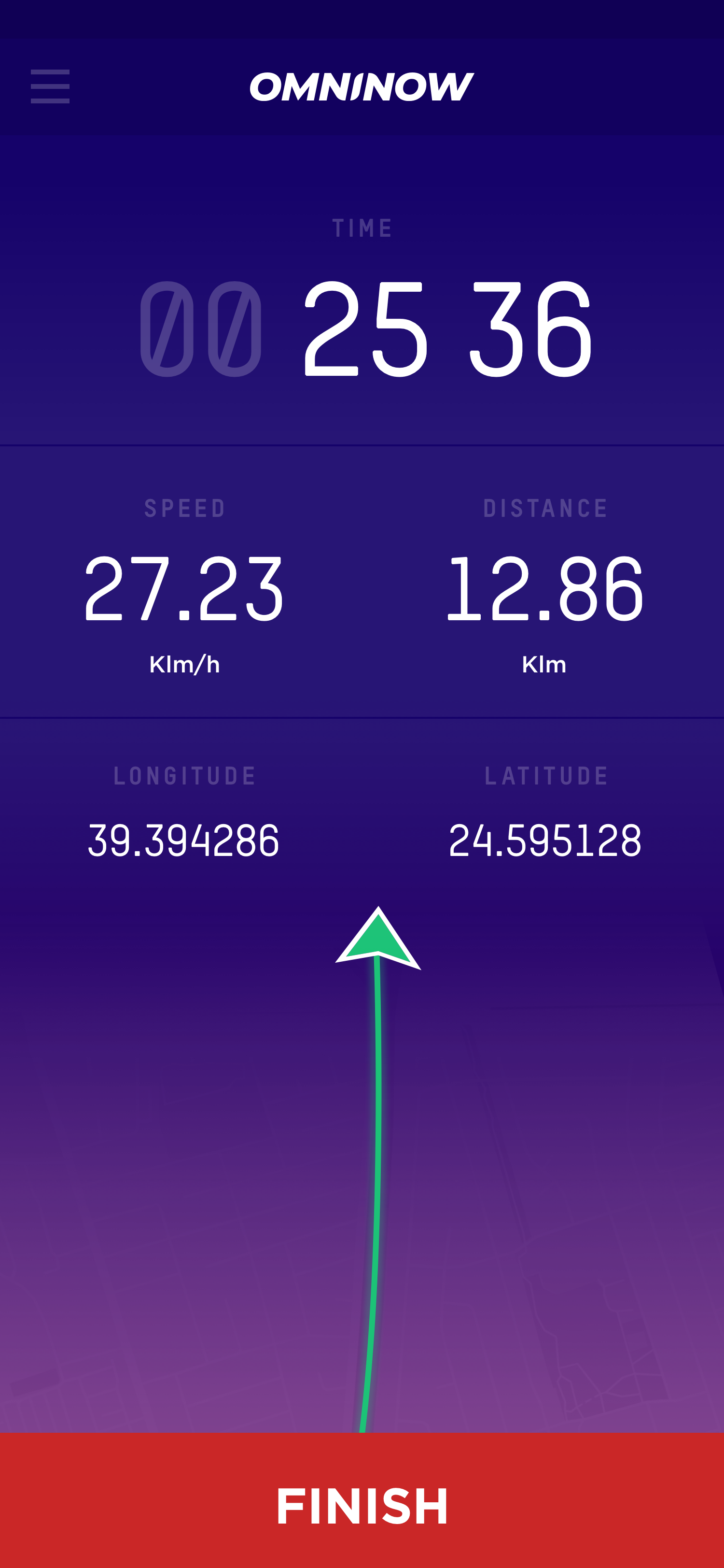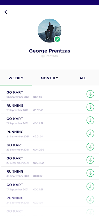 The App: The users sign up/log in in the app. They see the homepage where they can start their experience. A starting point connected with their location appear on a map, where in live time they can see where they are. When they start the experience, the app measures time of the activity, speed, distance, longitude, latitude. When the users tap the finish CTA, they have the results of their activity, that they can export them and compare them with previous activities.